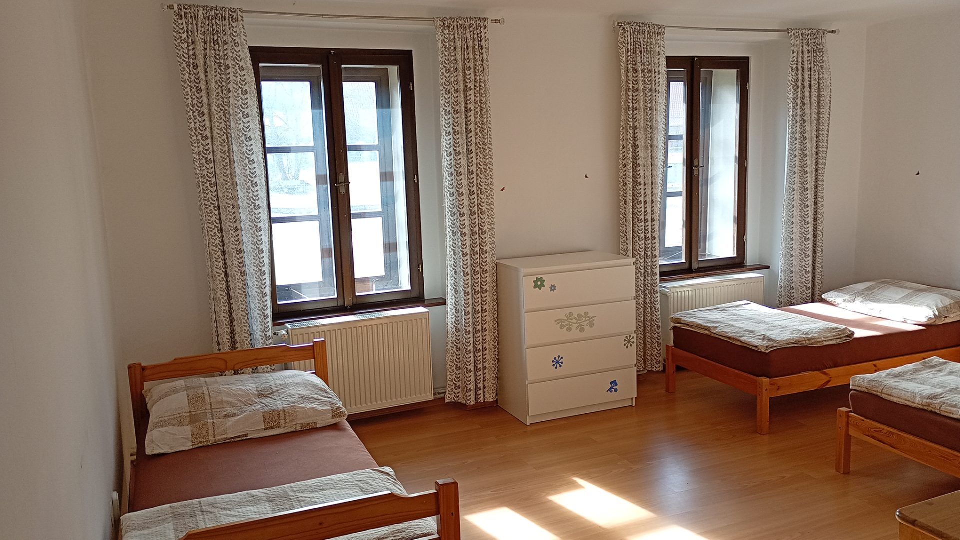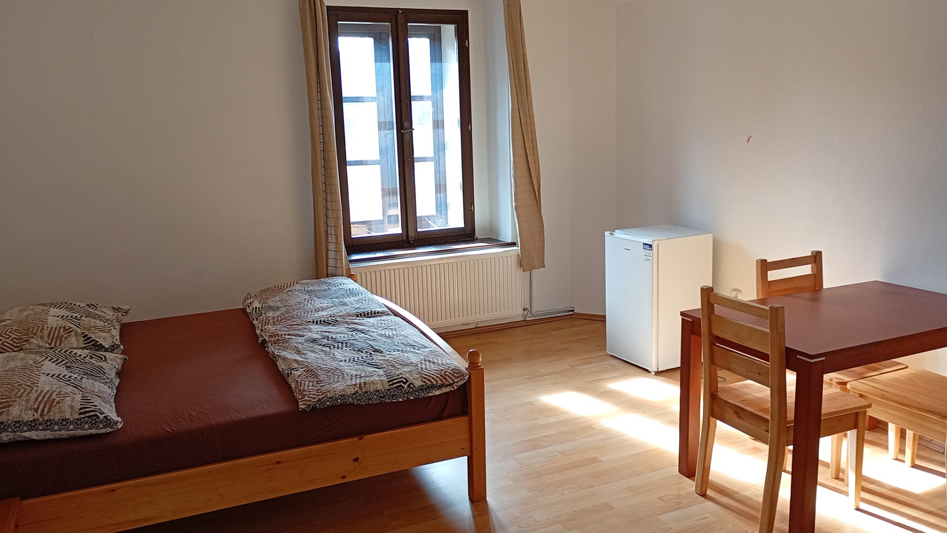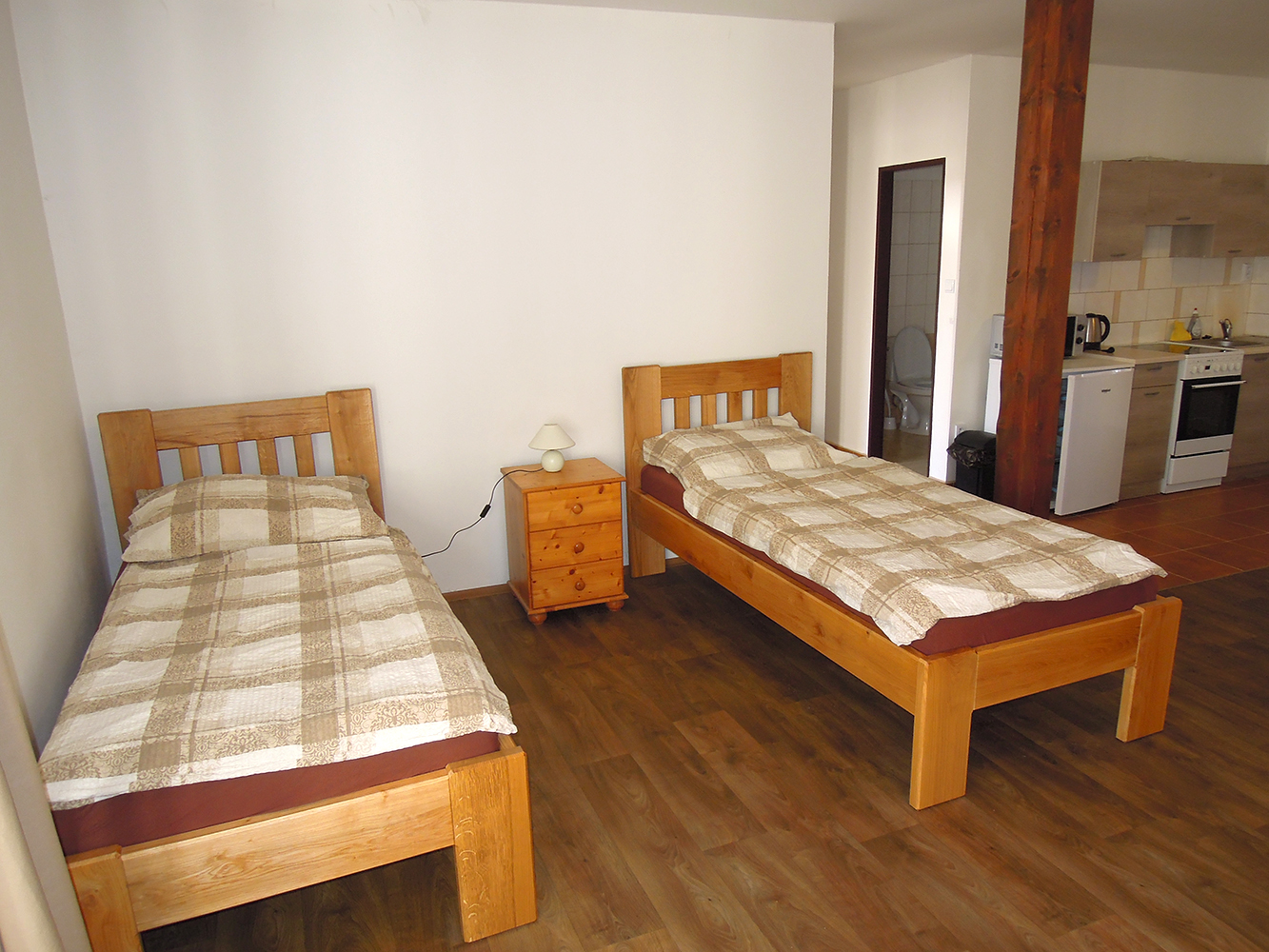 Říkame jim pokoje, ale všechny mají vlastní koupelnu a toaletu. Většina má také kuchyni a předsíňku. Nachází se v hlavní budově.
