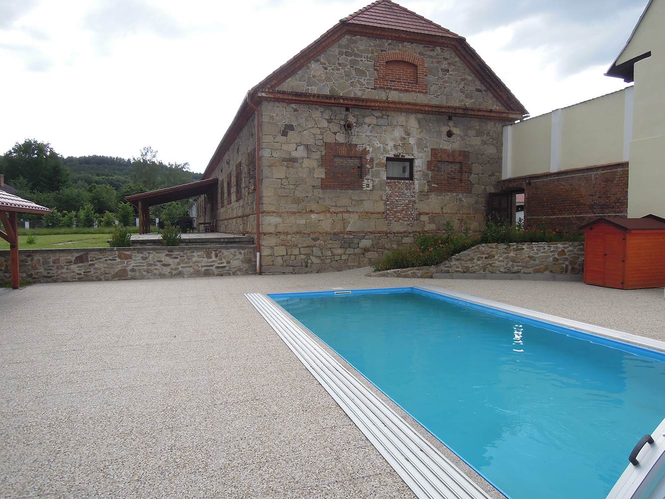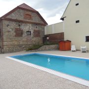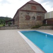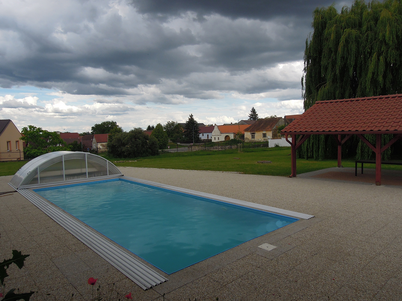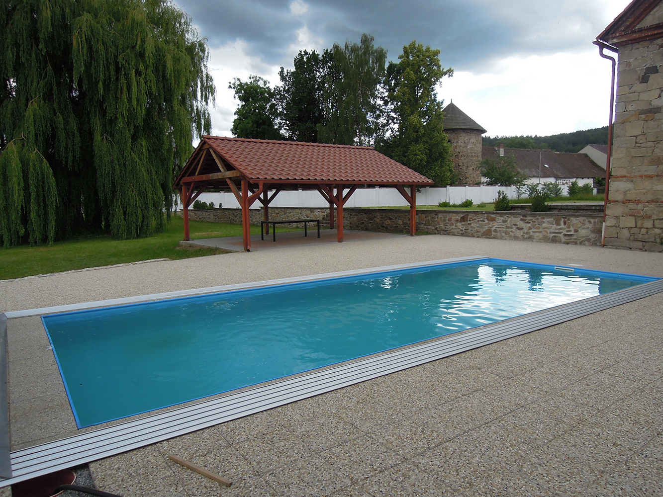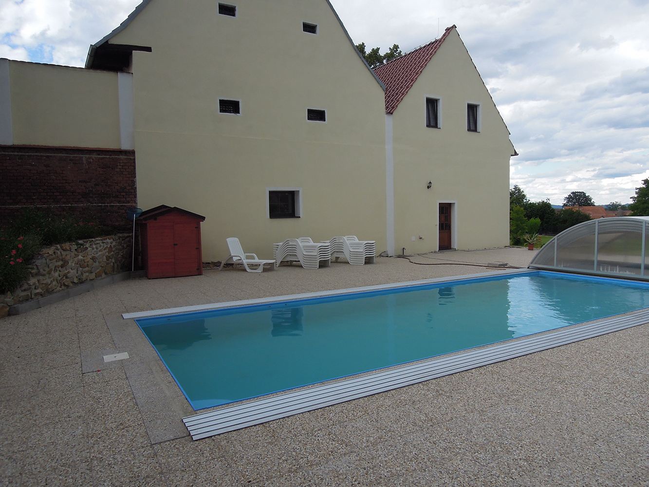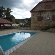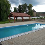 Venkovní bazén má rozměry 10 x 4 m