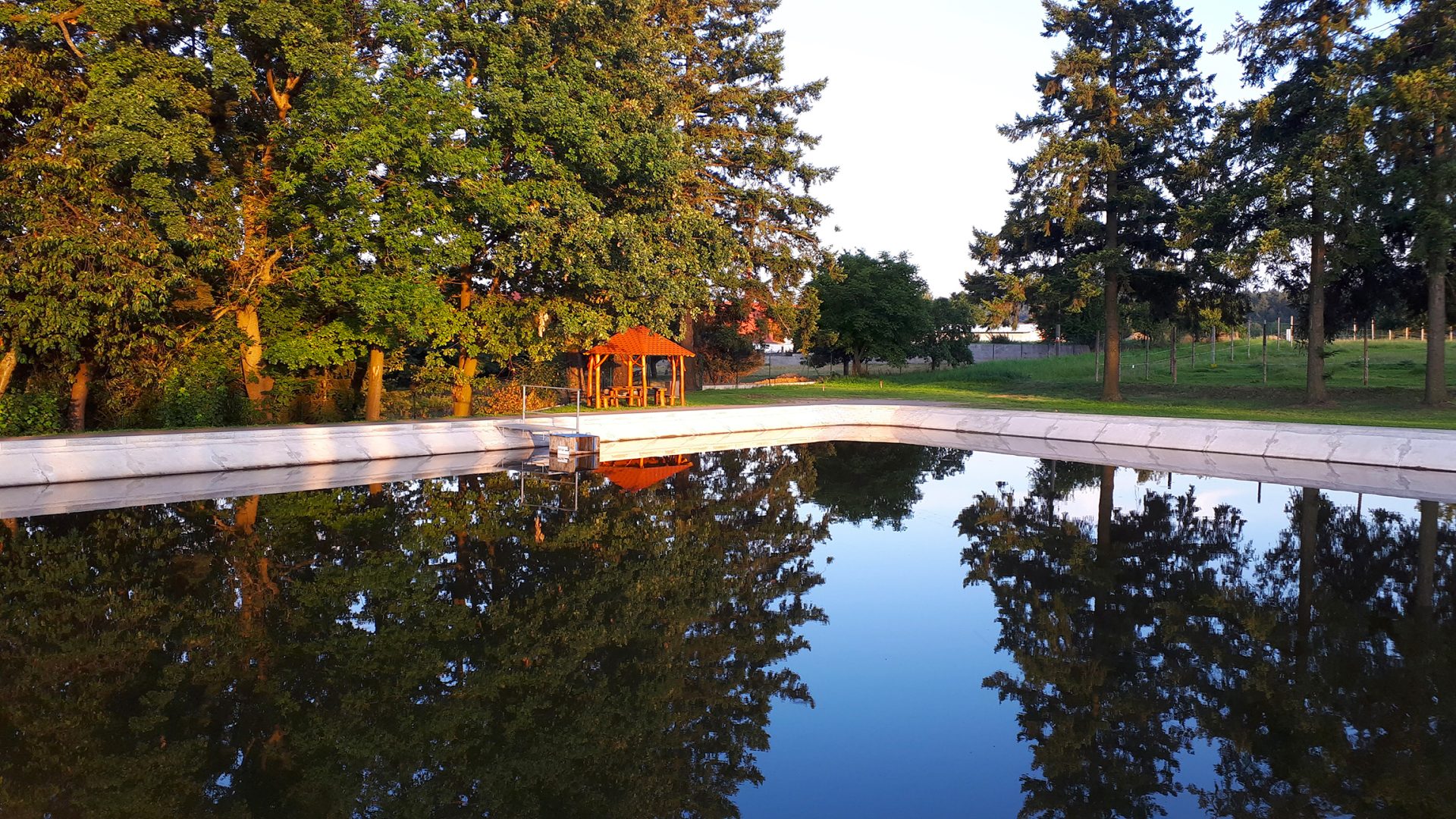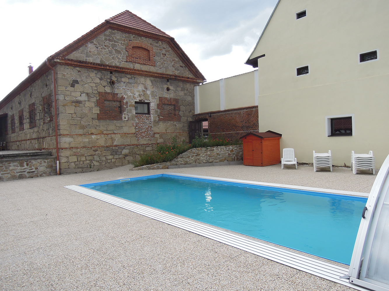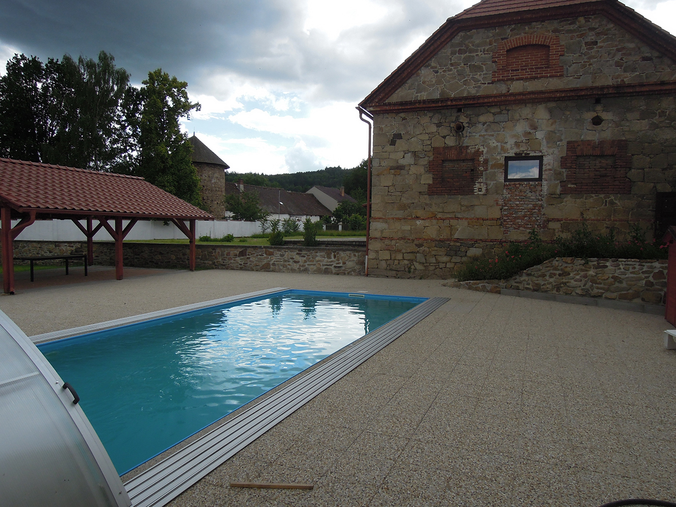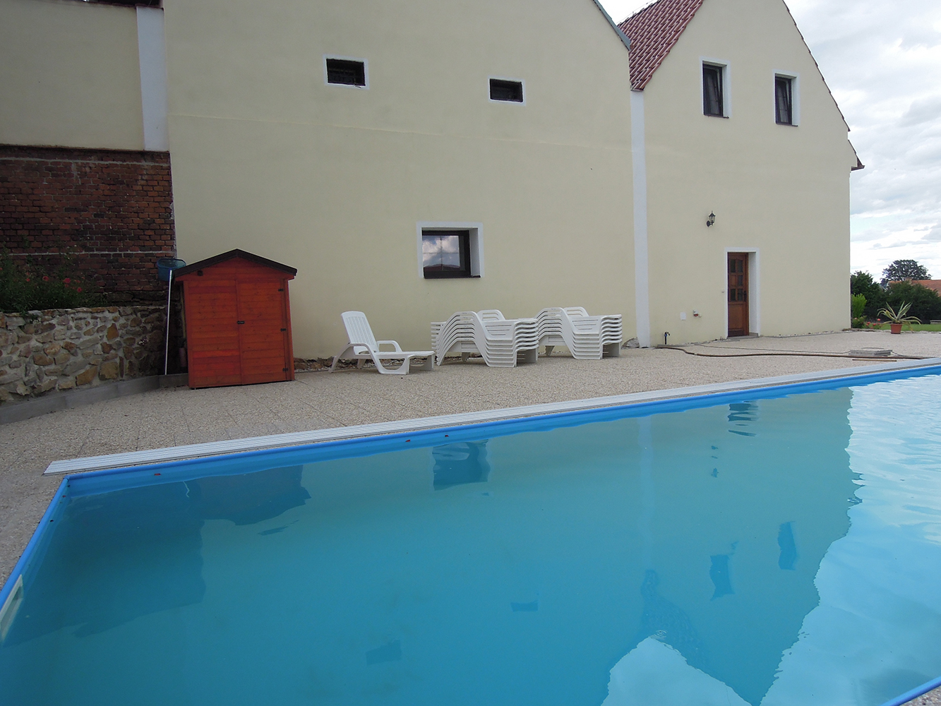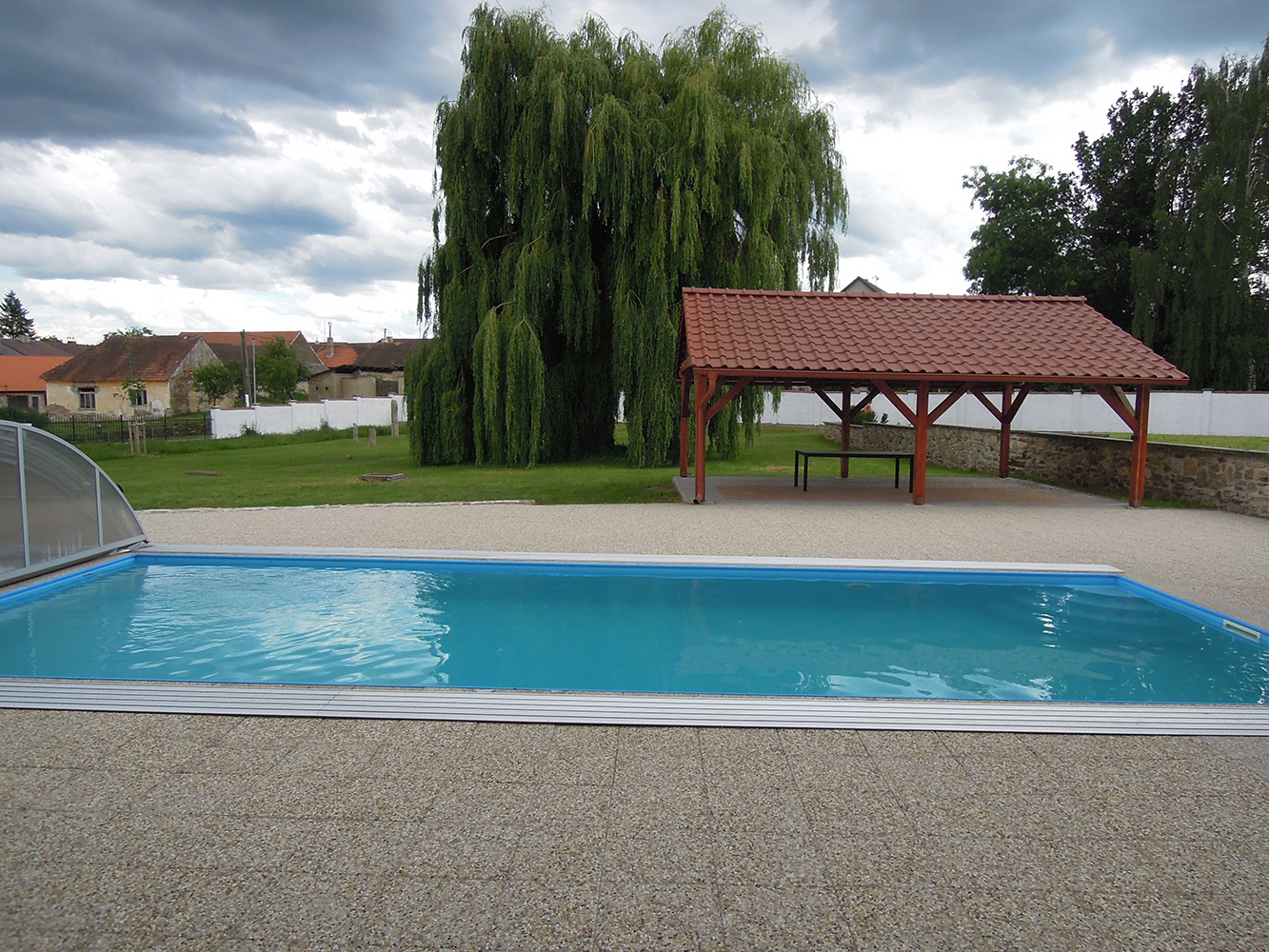 Venkovní bazén má rozměry 10 x 4 m