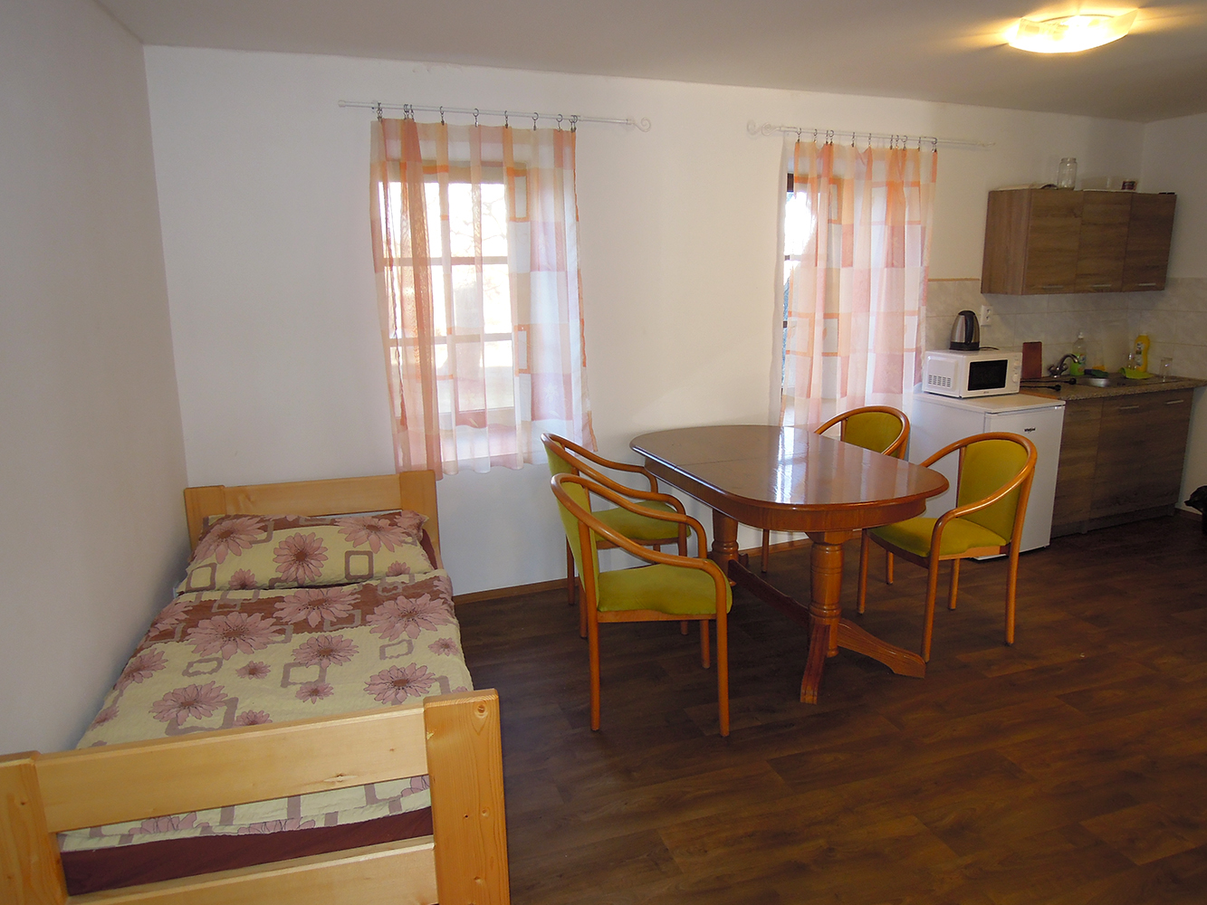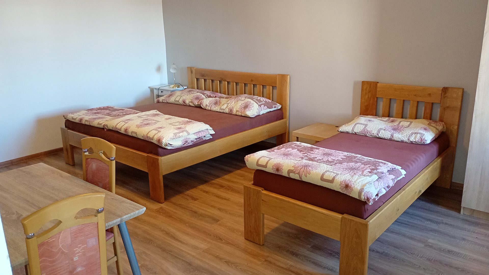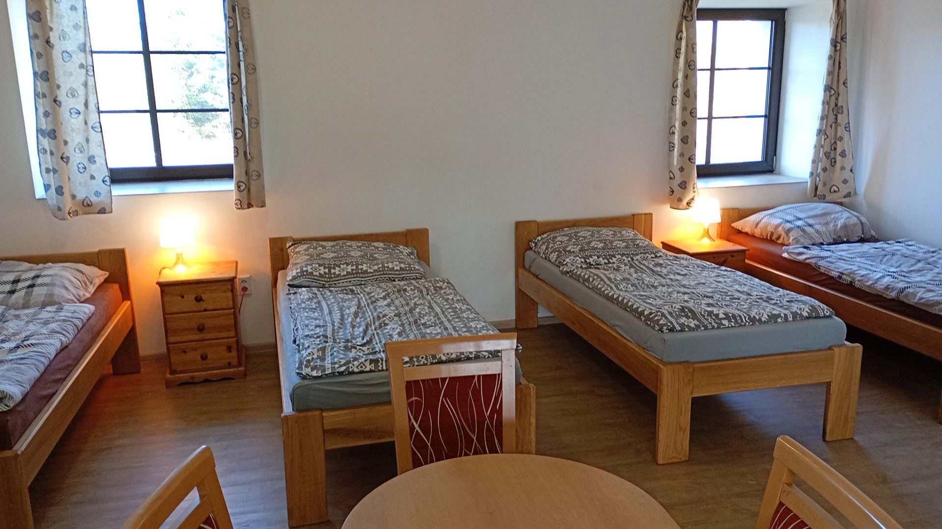 Apartmány se od tvz. pokojů neliší vybavením. Jediný rozdíl je, že jsou v přízemí vedle hlavní budovy penzionu a tvz. pokoje jsou v budově.