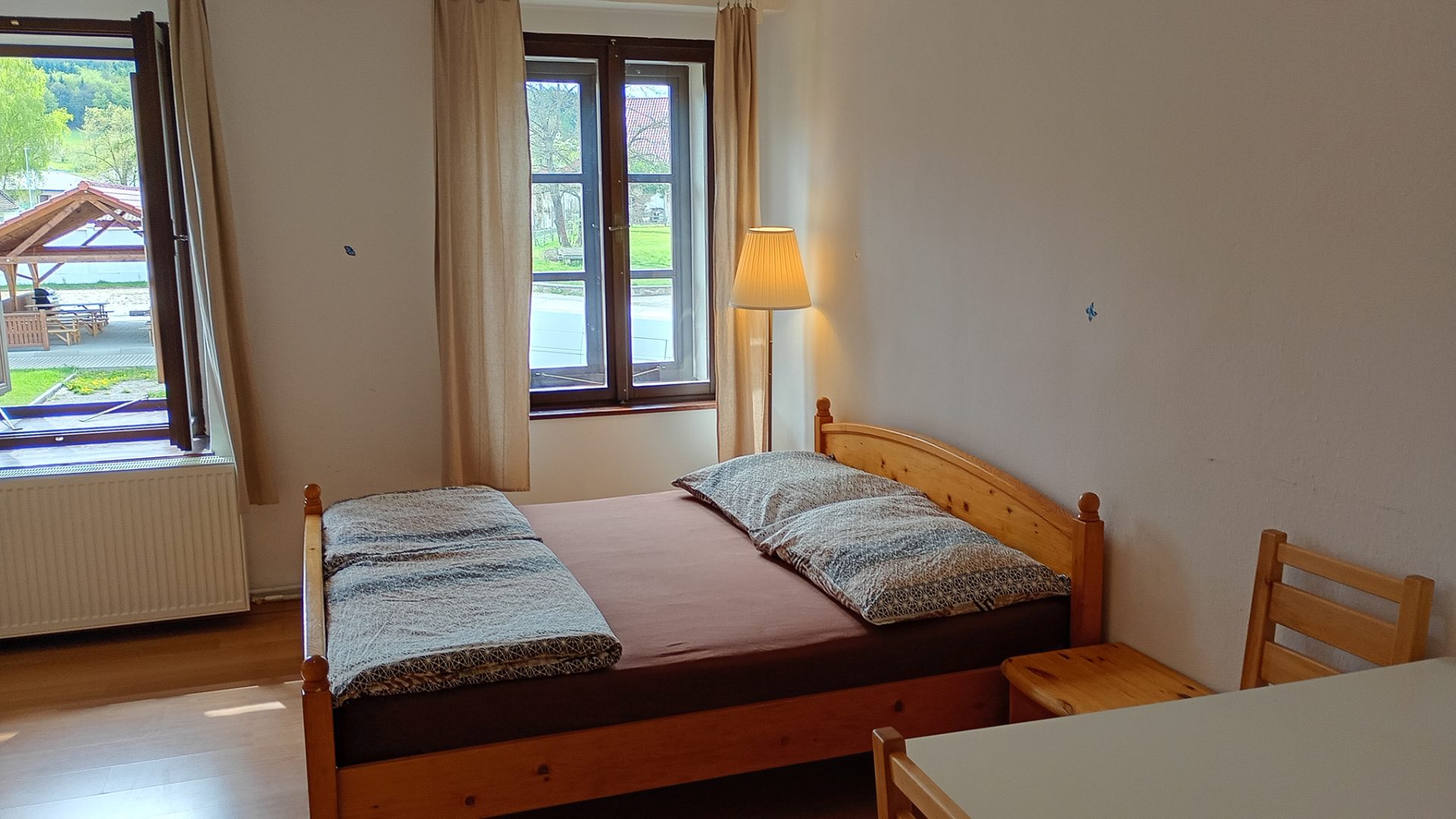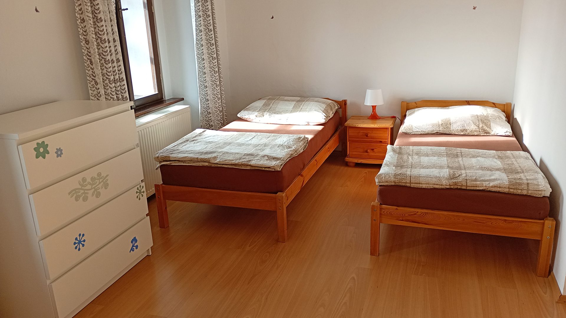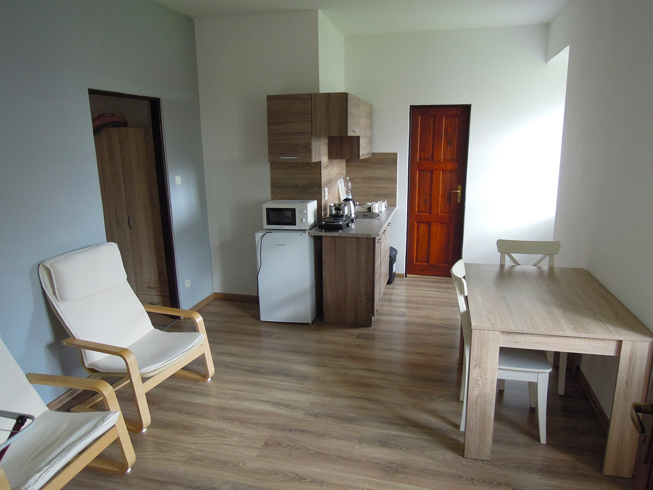 Apartmány se od tvz. pokojů neliší vybavením. Jediný rozdíl je, že jsou v přízemí vedle hlavní budovy penzionu a tvz. pokoje jsou v budově.