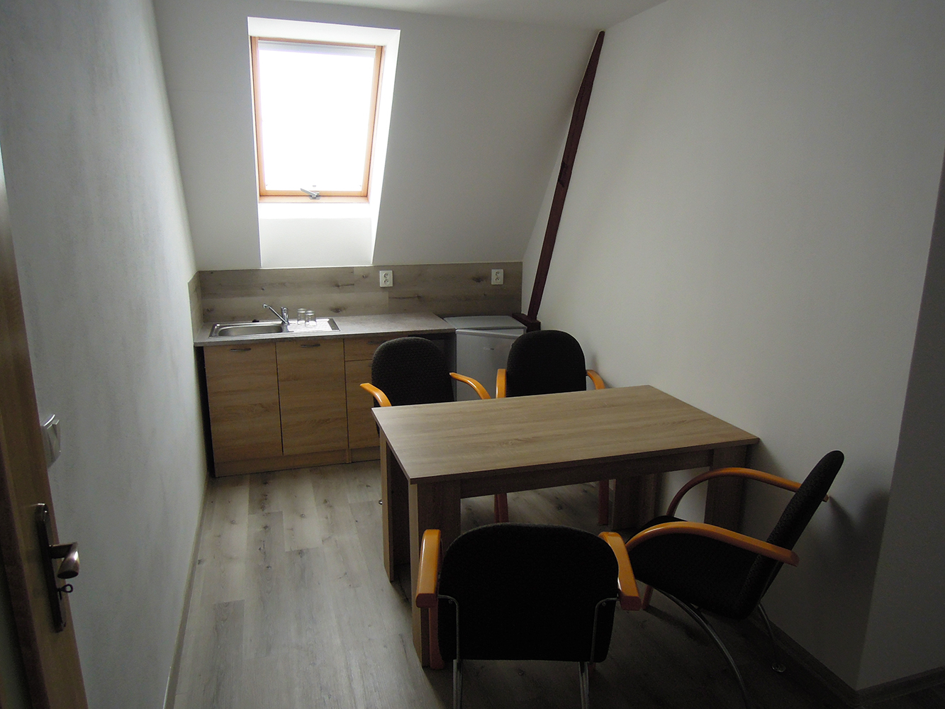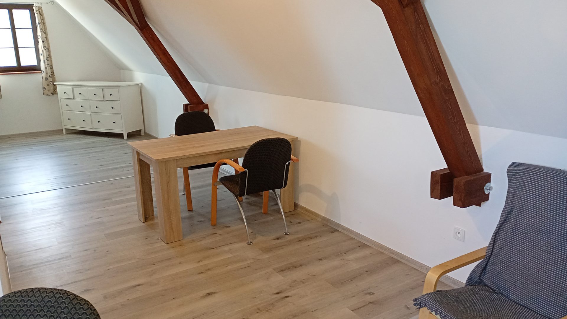 Stranou od ostatních ubykací v podkroví poblíž svatebního sálu
